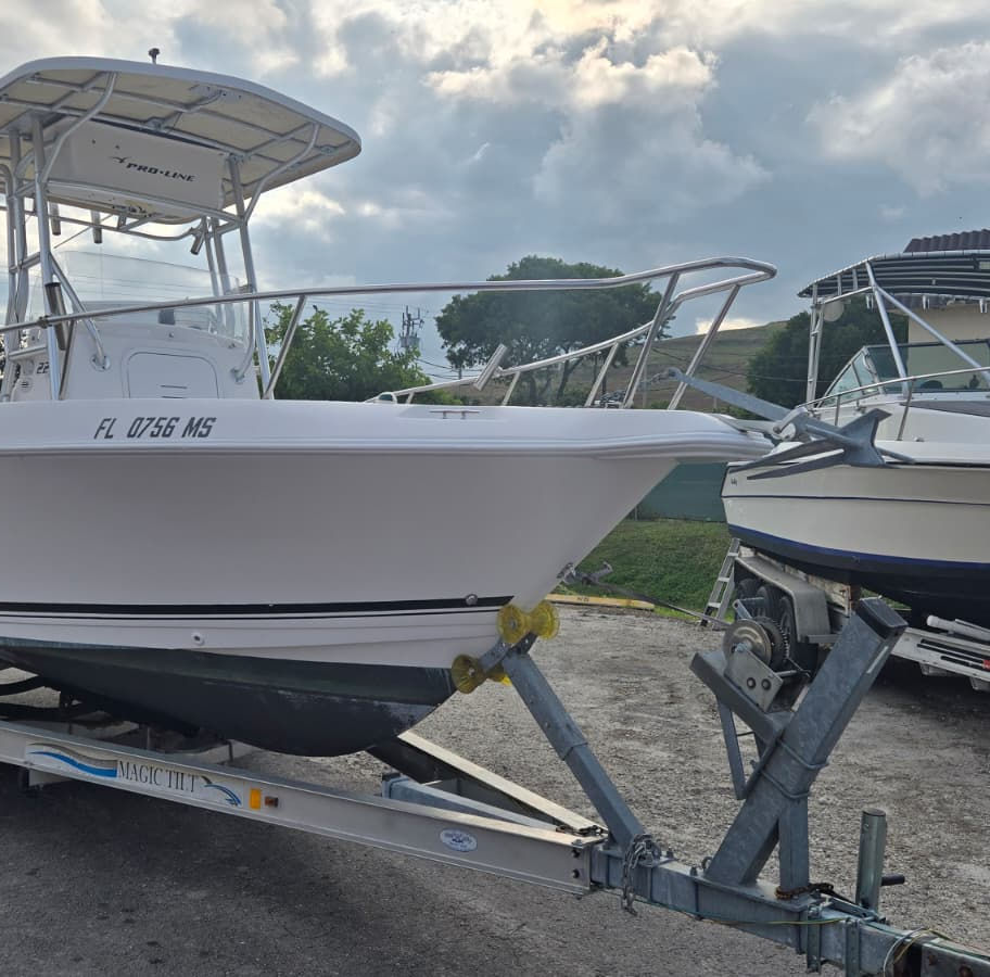 2004 Pro-Line 23’ Center Console powered by a Mercury 200 outboard. Turn key and ready for fishing, diving, or family fun, this Pro-Line runs strong and is in great shape for its year, with plenty of seating and deck space for everyone on board.