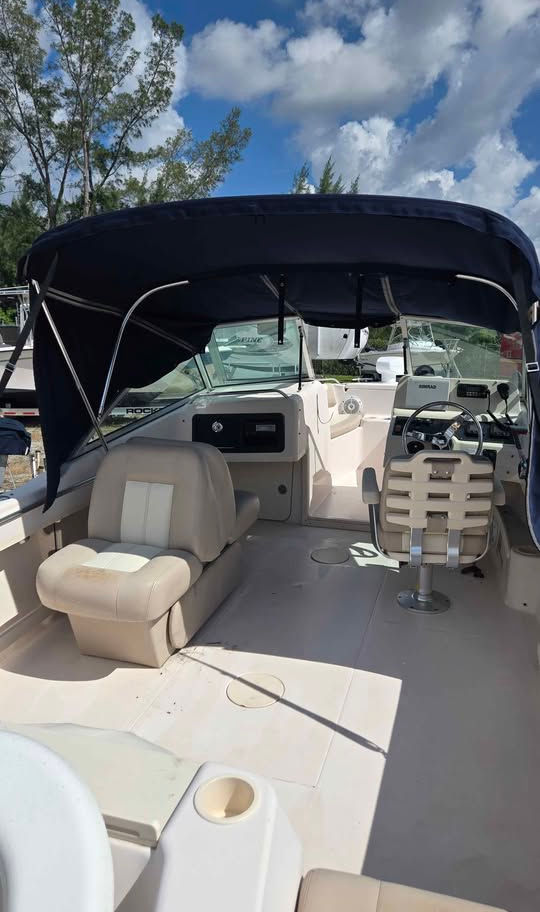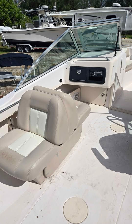 ✅ Features: Simrad MFD, VHF radio, fold-down lounge seat, Bimini top with ¾ enclosure, and sport light.