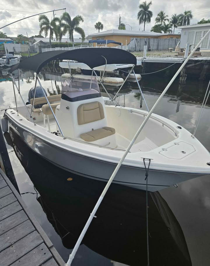 ✅ Features: Simrad GO7, 15-gallon livewell, folding rear seat, rear access door, oversized Bimini top with no rips or tears, and onboard porta potty.